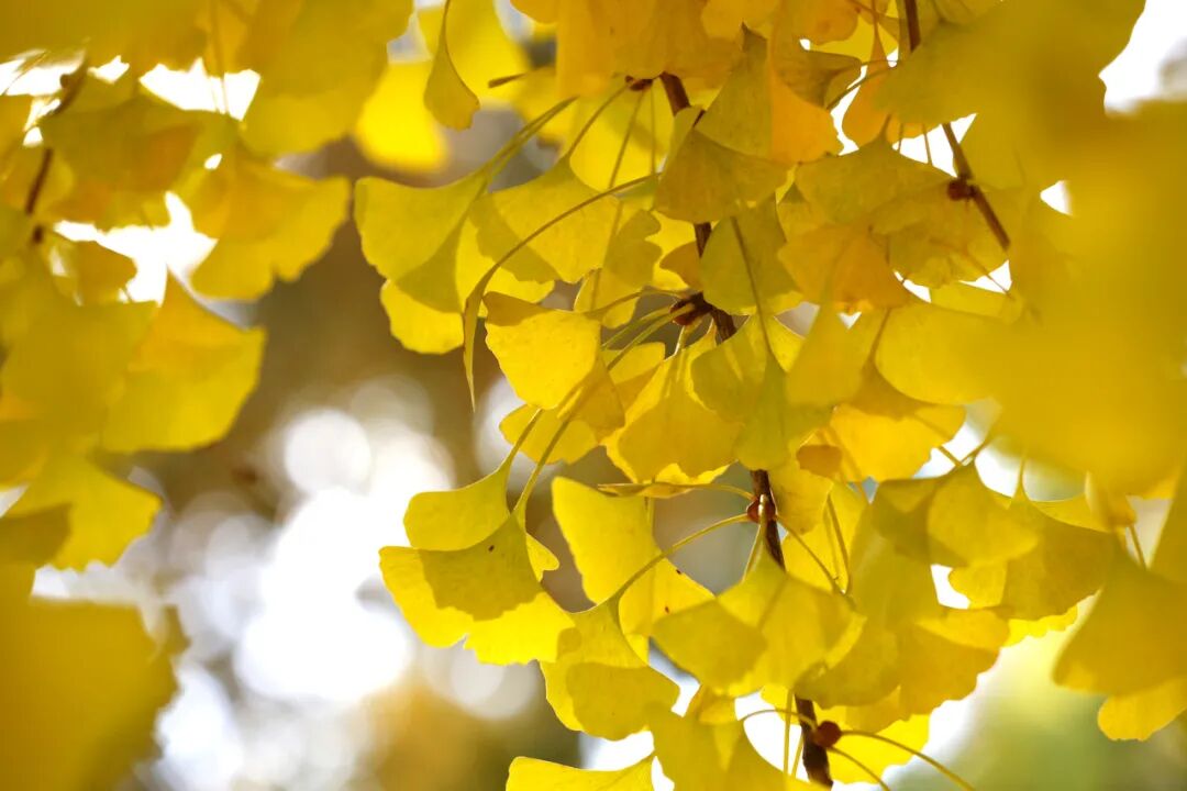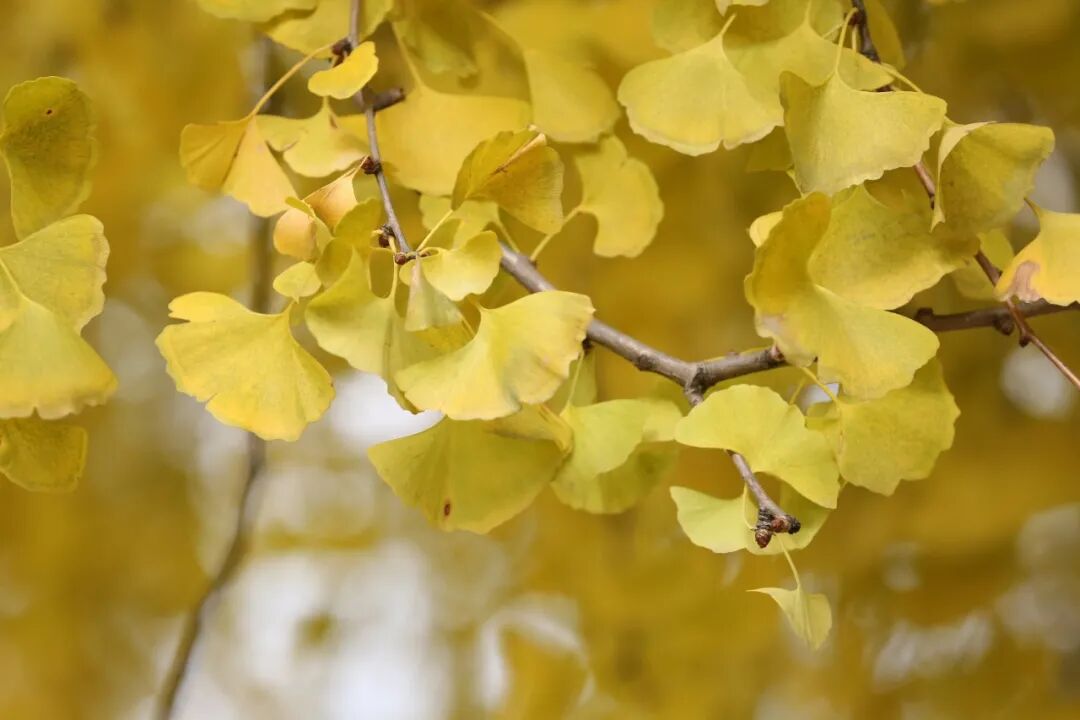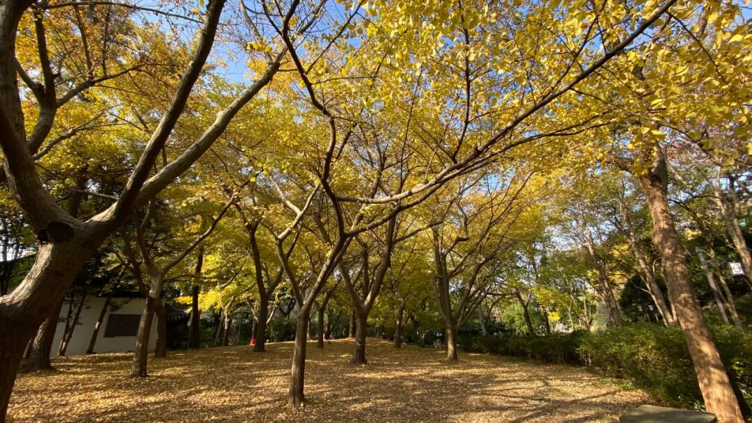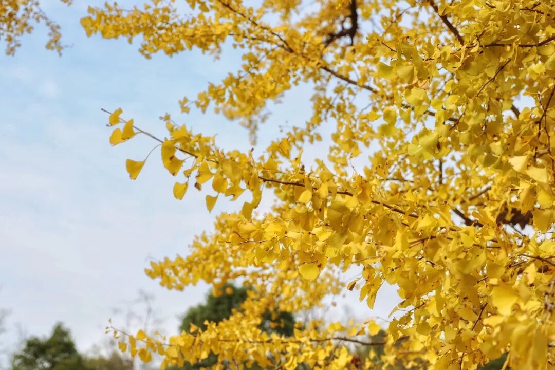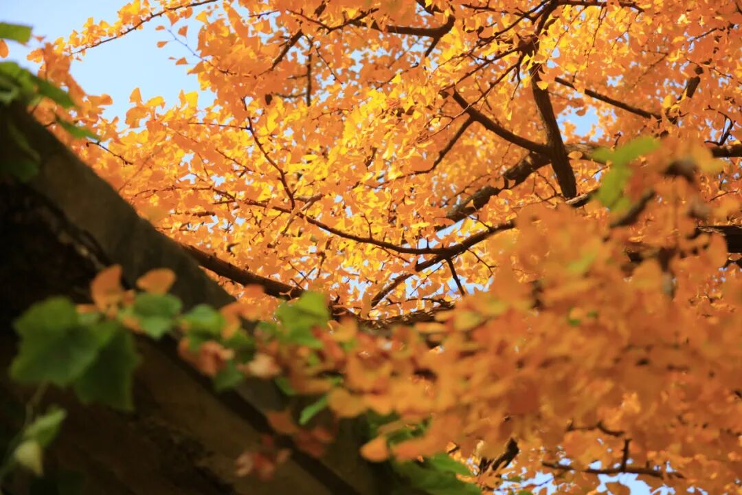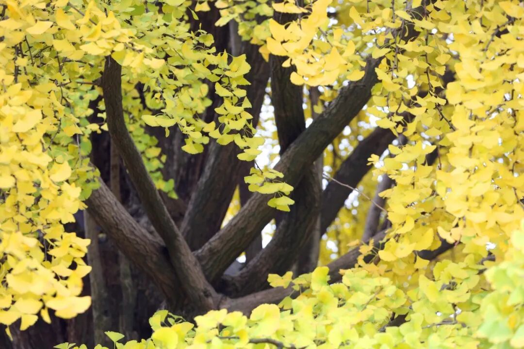 这里的银杏树叶才后知后觉地由绿变黄