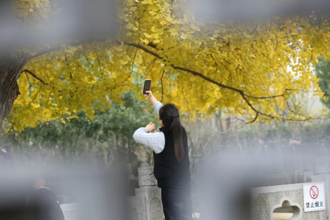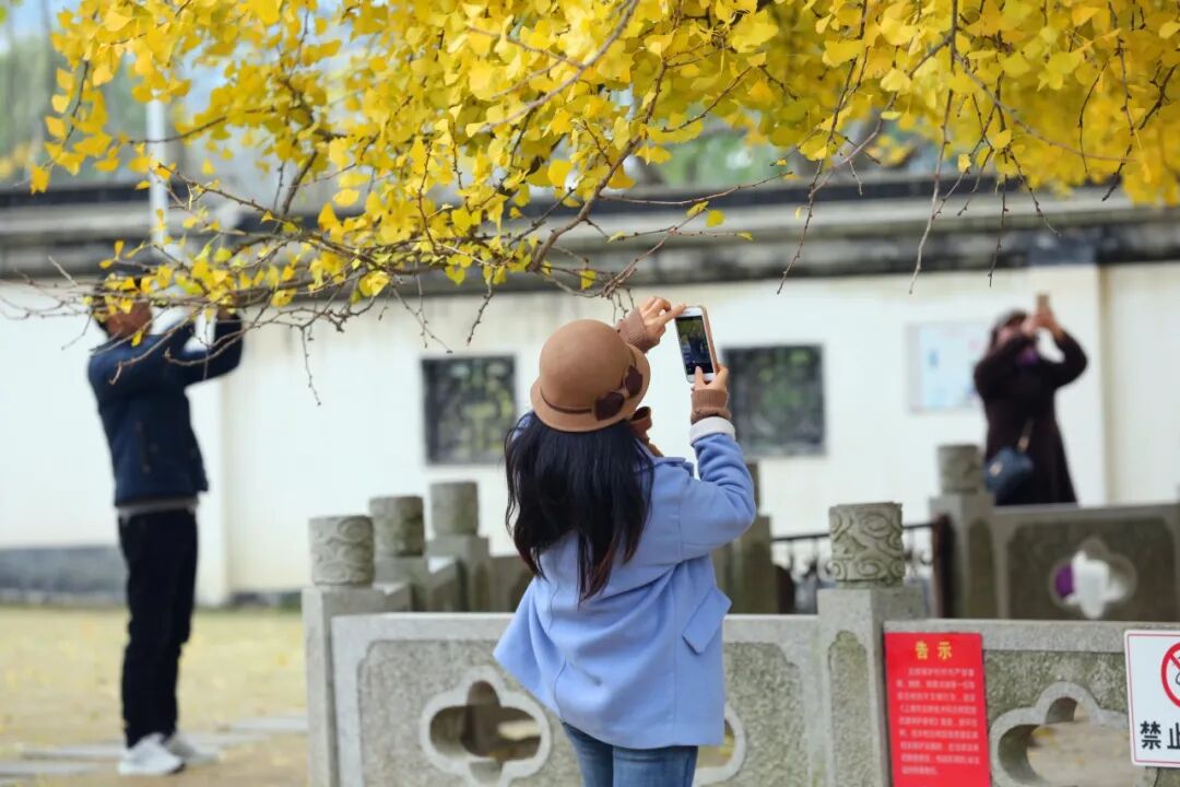 随着冷空气的不断侵袭,冬日的脚步也在悄然逼近。古猗园内的银杏树已一片金黄。阳光从树叶中洒下,呈露着让人眩目的金色,一阵微风吹拂过,便洒下无数的落叶,顺风贴着地面卷动,铺成一地锦绣。此刻,正是游园赏银杏,看落叶的最佳时机。