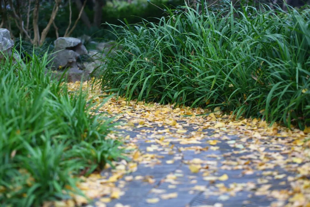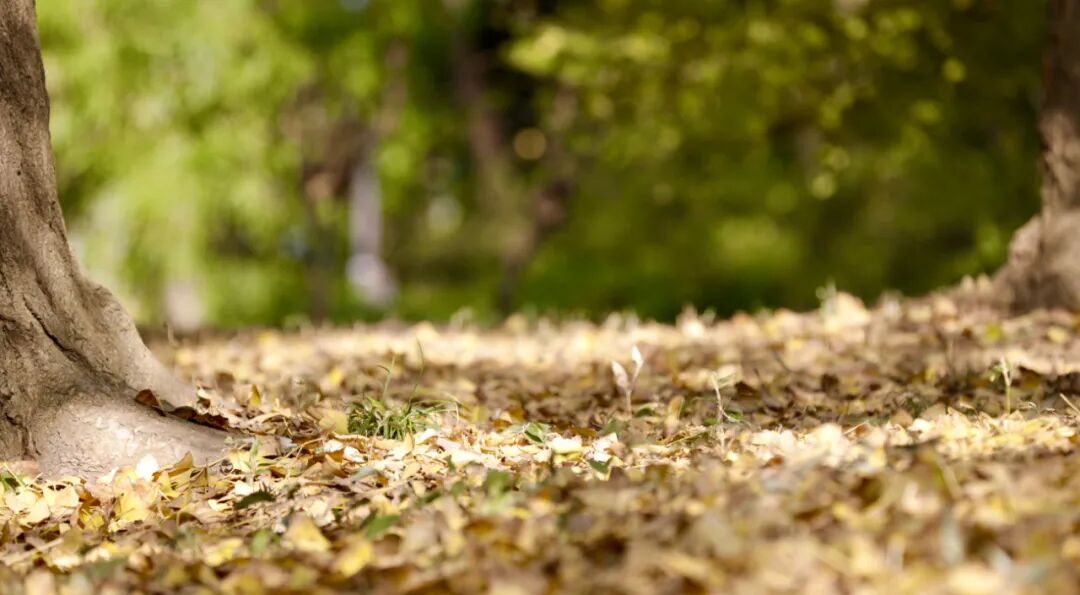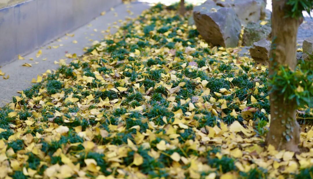 银杏叶纷纷扬扬飘落在草坪上
