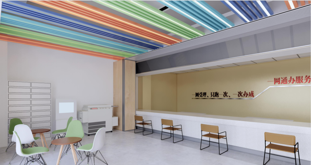 一号楼设一网通办、调解室、职工之家等。除了“一网通办”服务点提供相关政务服务事项受理外,综合服务窗口还可提供涵盖党群服务、生活服务、事务受理、养老顾问、就业援助等事项的咨询服务,另设24小时自助服务区。