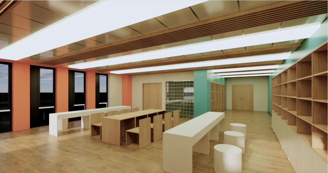 二号楼设儿童之家、日间照护中心。儿童之家设有儿童教室、亲子活动室、接待区以及休息区,为广大儿童提供一个集游戏、娱乐、教育、卫生为一体的服务平台,开设科普培训、亲子阅读等课程。