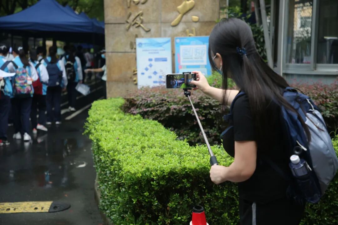 在上外嘉定实验高中考点,陈女士拿着手机一路跟拍参加高考的孩子。“今年情况特殊,应该留下一份珍贵的回忆。”陈女士表示,希望孩子能够正常发挥,“努力就好”。