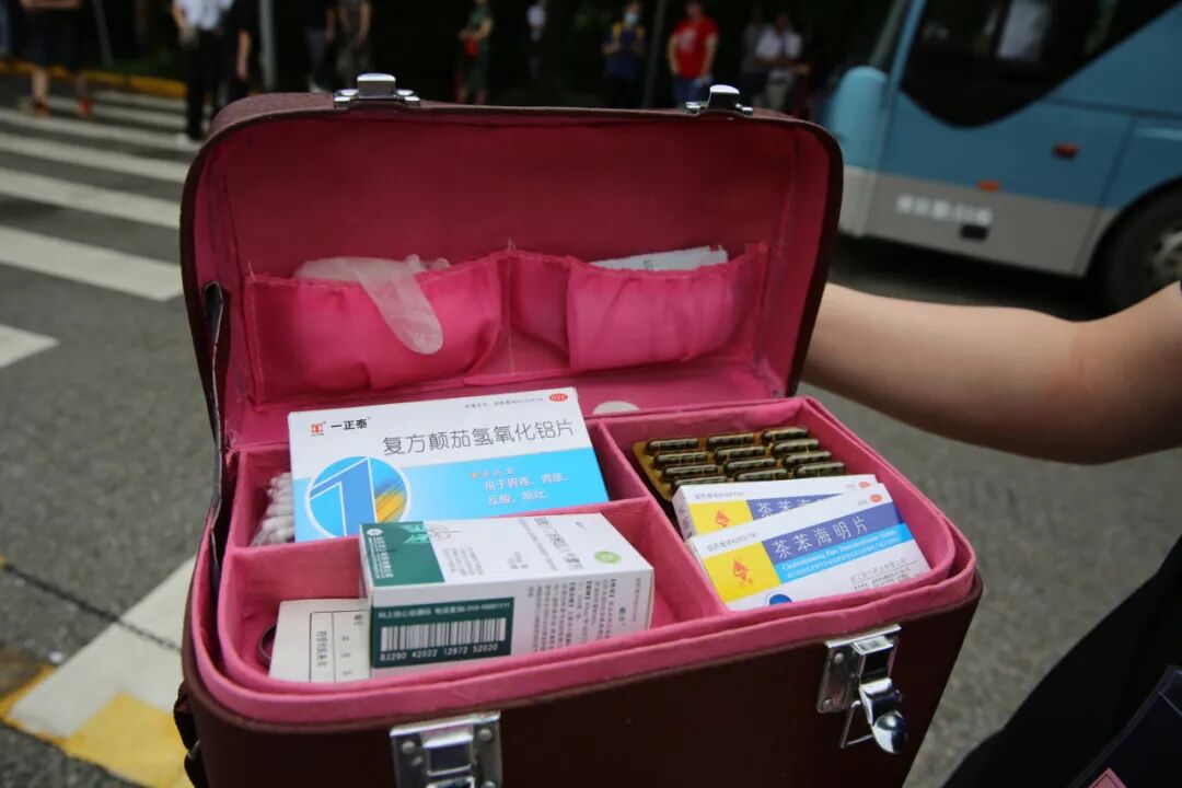 在迎园中学考点,来自迎园医院的医生、迎园中学以及上海市行政管理学校的校医等组成了医护小分队,带着药箱,为学生们保驾护航。