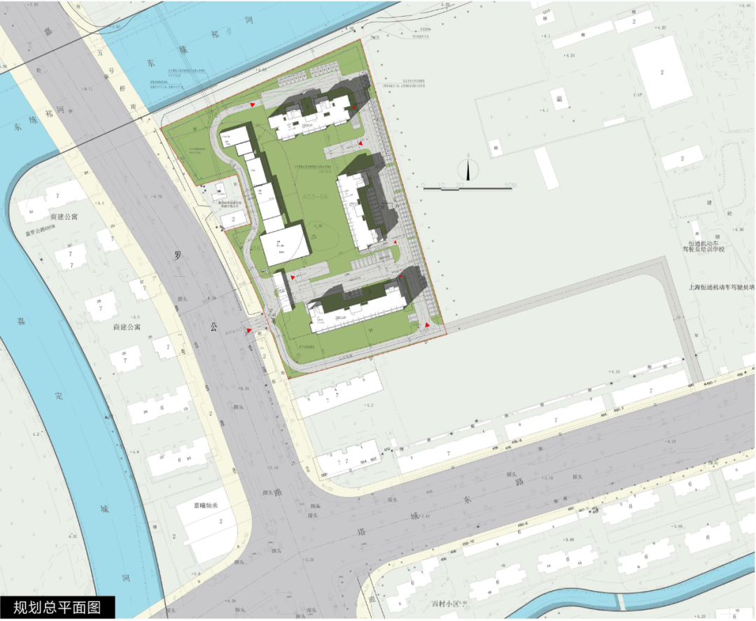 该项目基地东至A03-15地块,西至嘉罗公路,南至塔城东路492-496弄,北至东练祁河,总用地面积16908.70平方米。