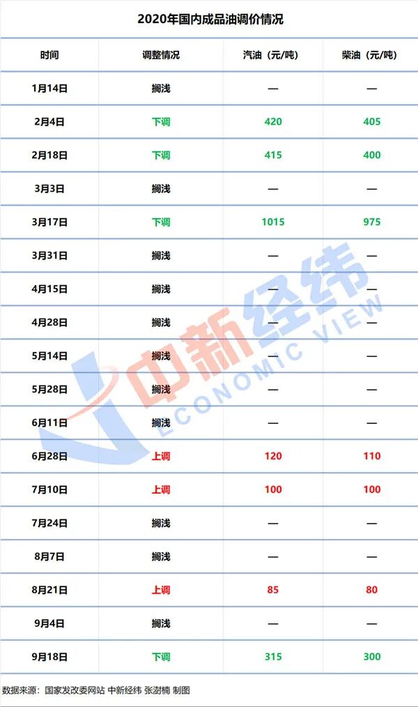 今年以来,国内成品油价格已经历18次调整,其中11次搁浅、4次下调、3次上调,汽、柴油价格分别累计下调1860元/吨、1790元/吨。其中,有六次因触发“地板价”保护机制未能调整。
