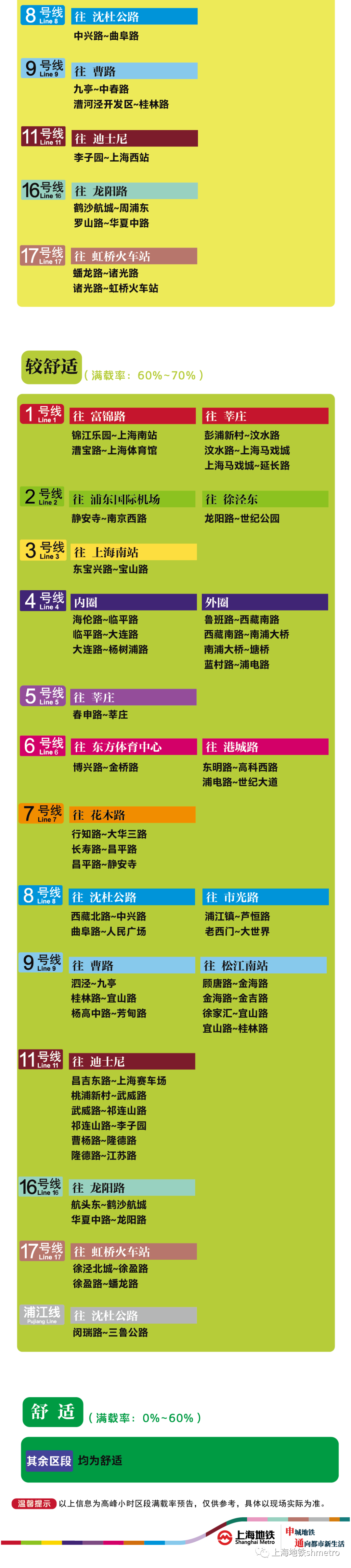 需要提醒的是,上海地铁目前试点发布的乘坐舒适度预告,只作为乘客出行参考,实际乘坐体验以现场为准。
