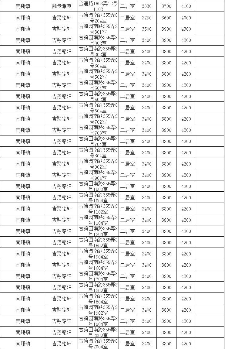 以绿色新风为代表的朗诗绿色街区,在区域比较低调但是很有特色的楼盘,目前可租房源不多,都是中套,大约6000-7000元/月。     路劲和溪岸澜庭一样,都是板块内性价比最高项目,目前翡丽湾可租房源大套价格大约在6000-8000元/月,上隽嘉苑中小套租金大约在3000-5000元/月。     新城公馆,曾经把持了3年的嘉定地王头衔,是新城集团打造的样板项目。实事求是的说,装修标准直到目前也应该是南翔标杆(甚至超过华润一期)。这个项目住宅项目为大平层,4年前租金已经达到10000元/月,目前有房源是14000元/月。同时,旁边还有酒店式公寓的类住宅小户型,租金大约4000-4500元/月。
