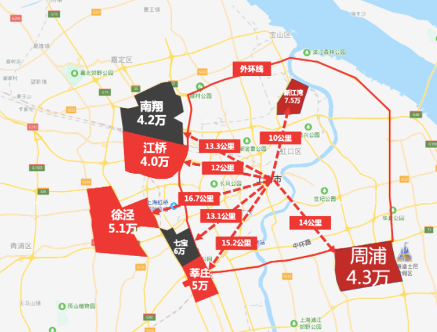 南翔、江桥、嘉定新城都是嘉定重要的门户区域,由于接近市区及宜居的环境,房价和租金价格一直是嘉定最高的。但是与市区相比,很显然,嘉定南部这些区域依然还是价格不算高,比如南翔,对比一下房价会发现,南翔目前新房均价大约4.2万,绝对算是外环价格洼地了,区位、交通、历史等方面与南翔极为类似的闵行七宝,其新房均价已经高达6万。