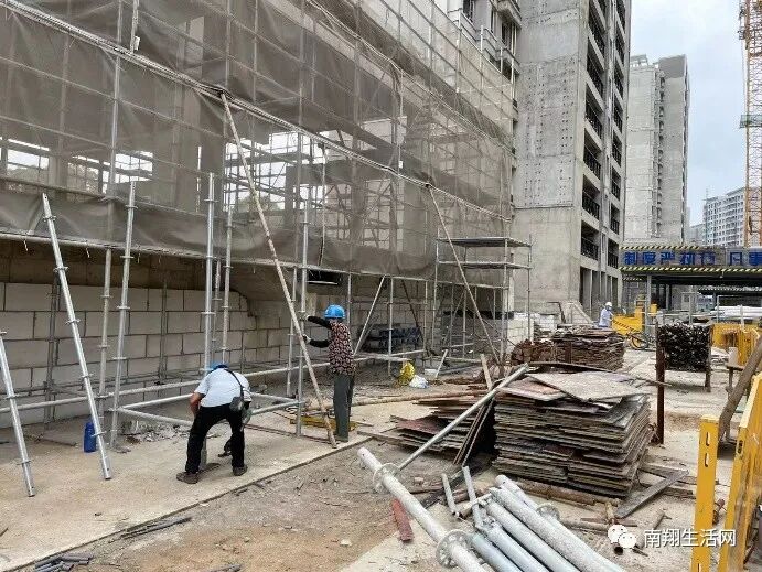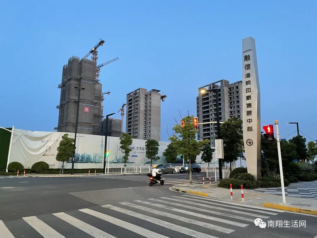 跟工人交谈得知,受上海疫情影响,在6月初逐渐恢复后,工人已陆续到位。工程项目方表示,会全程从严把控安全质量,有序推进工程建设进度,力争提前竣工交付给业主。     (2022年6月21日13:00  乐居实拍图)   今日傍晚,南翔生活网小编路过融信南翔项目,也进行了项目的外场记录。