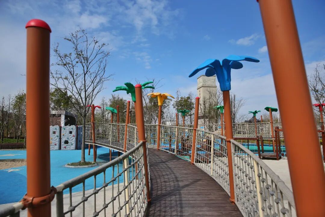 公园内铺设有健身步道,包括1公里内圈跑道和2公里外圈跑道,还有儿童乐园,供孩子们探索玩耍!