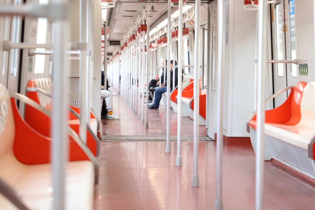 11号线地铁上,车厢十分干净,平时这个点已经很拥挤的,但此刻,却是如此安静。