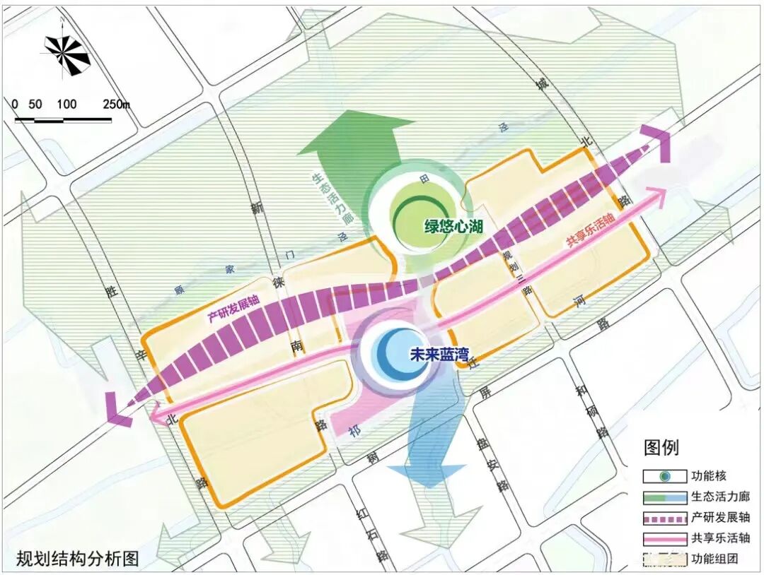 “按目前规划,以‘未来蓝湾’‘绿悠心湖’两个核心,形成一条滨水界面,充分开放共享一条生态活力廊道,利用林润路产研发展轴串联起多个产城融合组团,最终形成‘一河连两湾、一带融产城’的总体空间布局结构。最终将嘉宝智慧湾未来城市实践区建设成一座以芯片研发赋能、生态人文交融、低碳活力共享的智慧蓝湾。”鲍蓬结说。