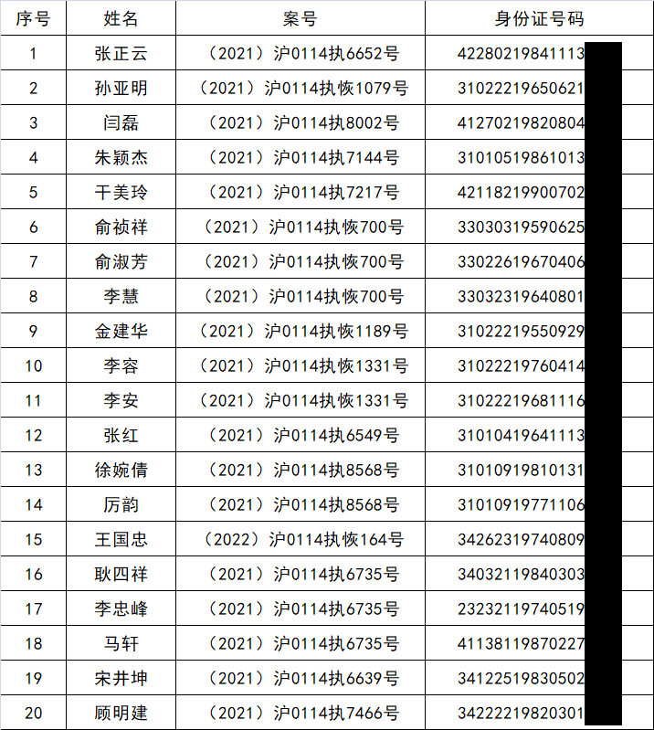 【曝光】嘉定一批失信被执行人名单曝光!发现立即举报!