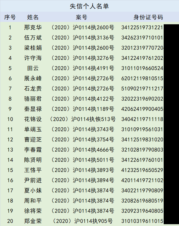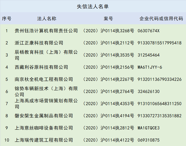 为维护法律的权威与尊严,保护胜诉当事人的合法权益,促进社会诚信体系建设,依照《中华人民共和国民事诉讼法》《最高人民法院关于人民法院执行工作若干问题的规定(试行)》及《最高人民法院关于公布失信被执行人名单信息的若干规定》等法律、司法解释的有关规定,嘉定区人民法院向社会公开下列失信被执行人员名单信息。