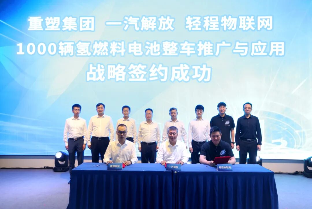 8月16日,一汽解放、重塑集团和轻程物联网三家企业在上海嘉定举行100辆氢燃料电池汽车交付暨1000辆氢燃料电池汽车战略签约仪式,加快推进燃料电池商用车项目落地。