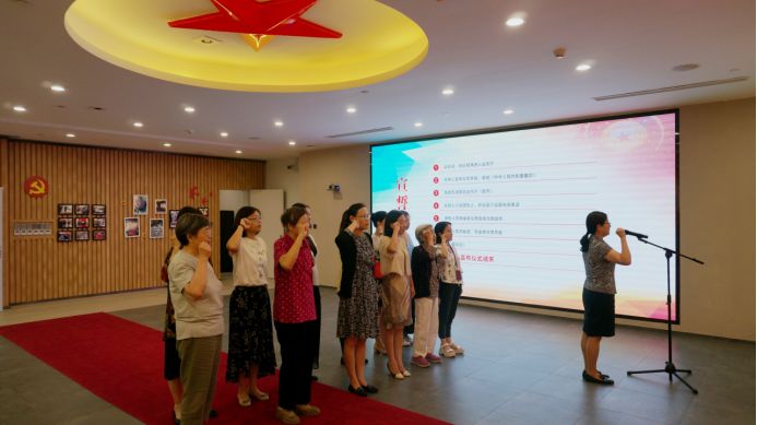 7月8日,为庆祝中国共产党成立98周年、新中国成立70周年,区妇联开展“不忘初心 巾帼向党”主题党日活动。区妇联全体党员参加活动。