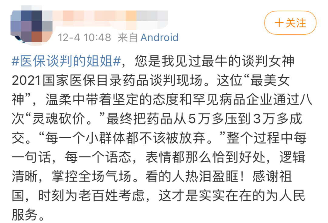 张劲妮被网友亲切地称为“医保谈判的姐姐”