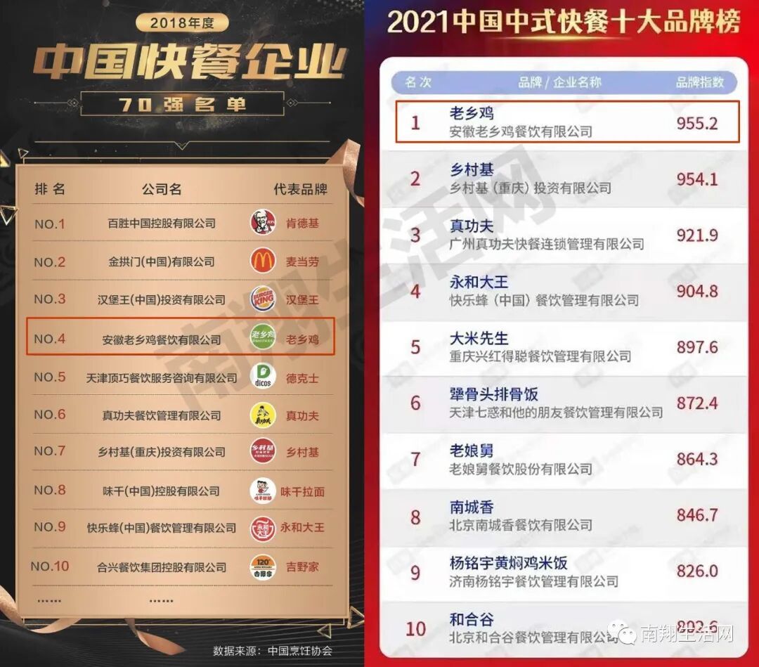 按照2018年数据及2021年数据,老乡鸡高居全国中式快餐第一,中国整个快餐领域仅次于百胜、金拱门和汉堡王等世界快餐品牌,排名第四。目前,其年销售额高达30亿元人民币(央广网数据)。