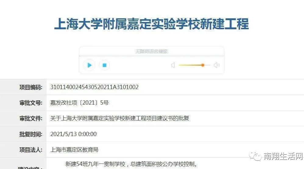 另外,根据去年发改委批复资料,上海大学附属嘉定实验学校新建54班九年一贯制学校,预计2023年竣工使用。
