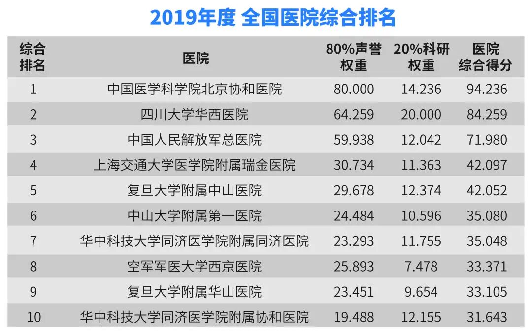 目前来说,复旦版《中国医院综合排行榜》和复旦版《中国医院专科综合排行榜》是唯一一张覆盖全国(包括公立、民营、部队和企业等)所有医院的榜单。