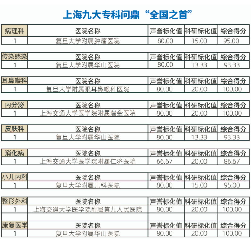 【权威发布】上海最佳医院、王牌科室排行榜!