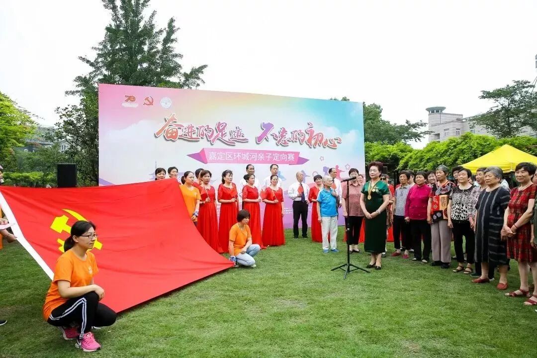 70组嘉定亲子家庭,70位来自嘉定各社会组织的志愿者,老三八红旗手,在嘉定区妇联、嘉定区级机关工作党委主办的 奋进的足迹 不忘的初心 亲子定向主题活动中,唱响 我和我的祖国 ,歌声回荡在嘉定母亲河环城河畔,以党建带妇建,共同携手走向新时代美好生活!