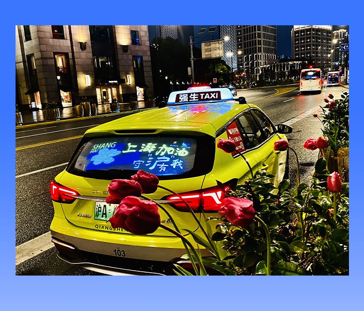 上万朵白玉兰花呈现在出租车后屏