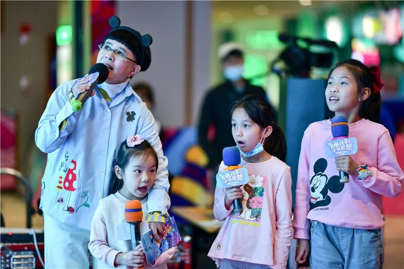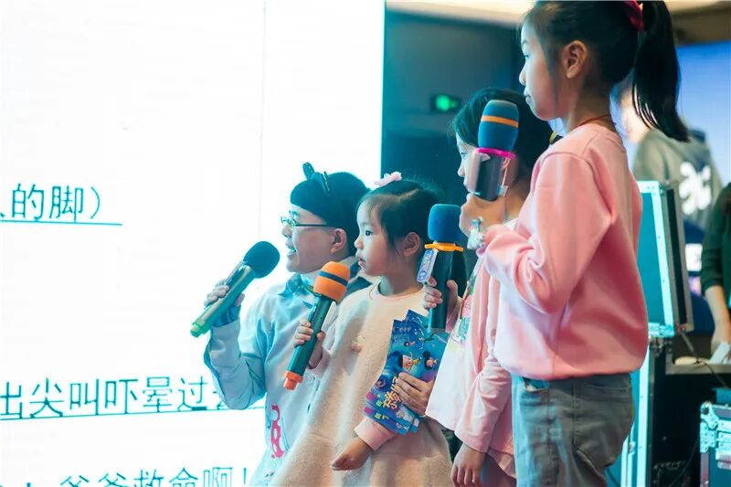 “金龟子”姐姐展示完片段配音,随即邀请了在场的小朋友们上台,对“大头儿子”的几段小故事进行配音互动。在“金龟子”姐姐的教学下,小朋友们快速掌握了配音技巧,在“魔法声咖秀”环节共同完成了属于小朋友们自己的配音片段。