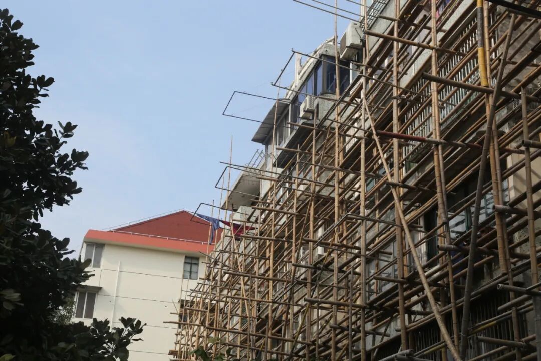 今天上午,记者在江桥镇华江路121弄小区看到,小区1-3号楼的改造已经完成,施工人员正在4-6号楼架设脚手架。居民顾女士介绍,这些居民楼已有近30年房龄,房屋的外立面早已破旧,“看到改造后焕然一新的楼房,大家都很期待自家楼栋尽早完成整修。”