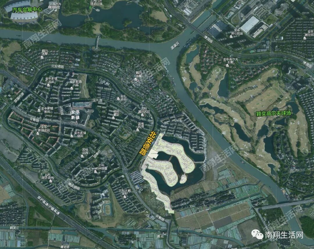 据前期资料,安亭新镇掌形湖项目,是整个安亭新镇一期中最后一片待开发地。位置绝佳,东面吴淞江和高尔夫球场,北面吴淞江,绝对是一块嘉定宝地。   0.3-0.4超低的容积率,建筑限高仅10米,如果不出意外,将会打造高品质的别墅类产品。甚至有可能成为嘉定的标杆级豪宅区域!   如果将图片放大,将会看得更加清楚。掌形湖区域主体的建筑造型极似联排和独栋别墅。