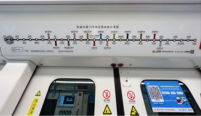 “门上有乾坤”:14号线是上海轨道交通领域内首次尝试站台门与PIS系统巧妙“合体”,在部分车站创新采用将PIS系统高清屏与可调通风站台门一体化设计,既避免了PIS屏容易被遮挡的情况,还提升了装饰美观度,并与不同车站整体装修风格保持了一致,强化了乘客体验感;