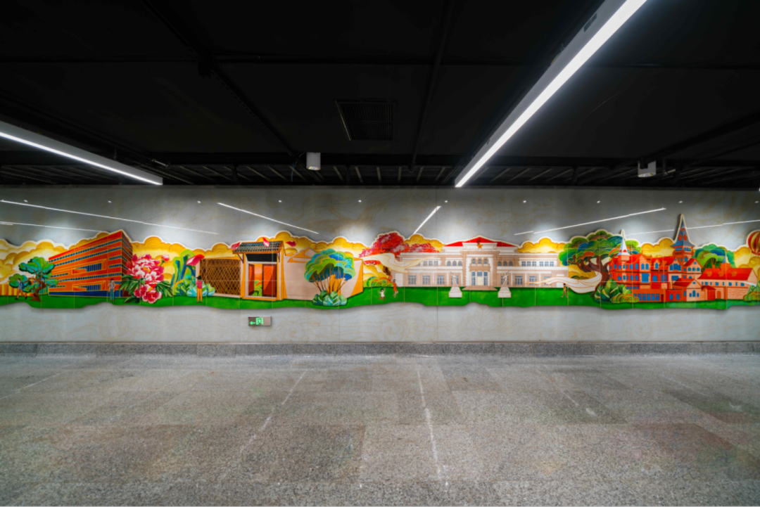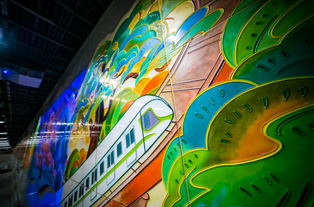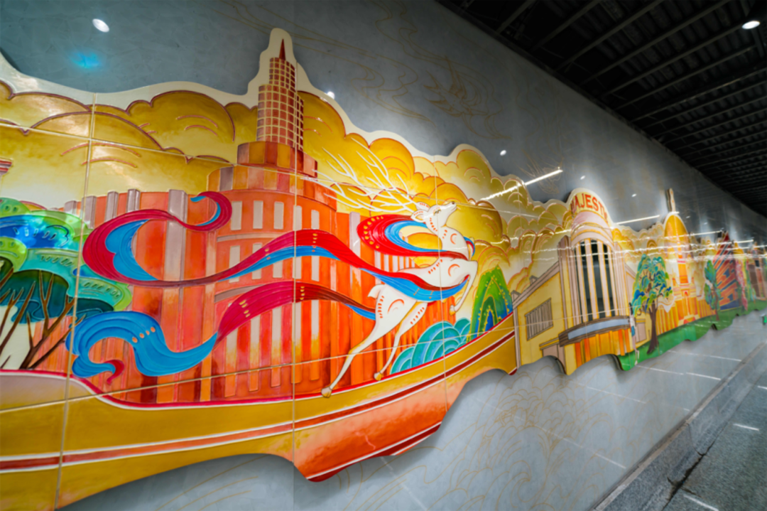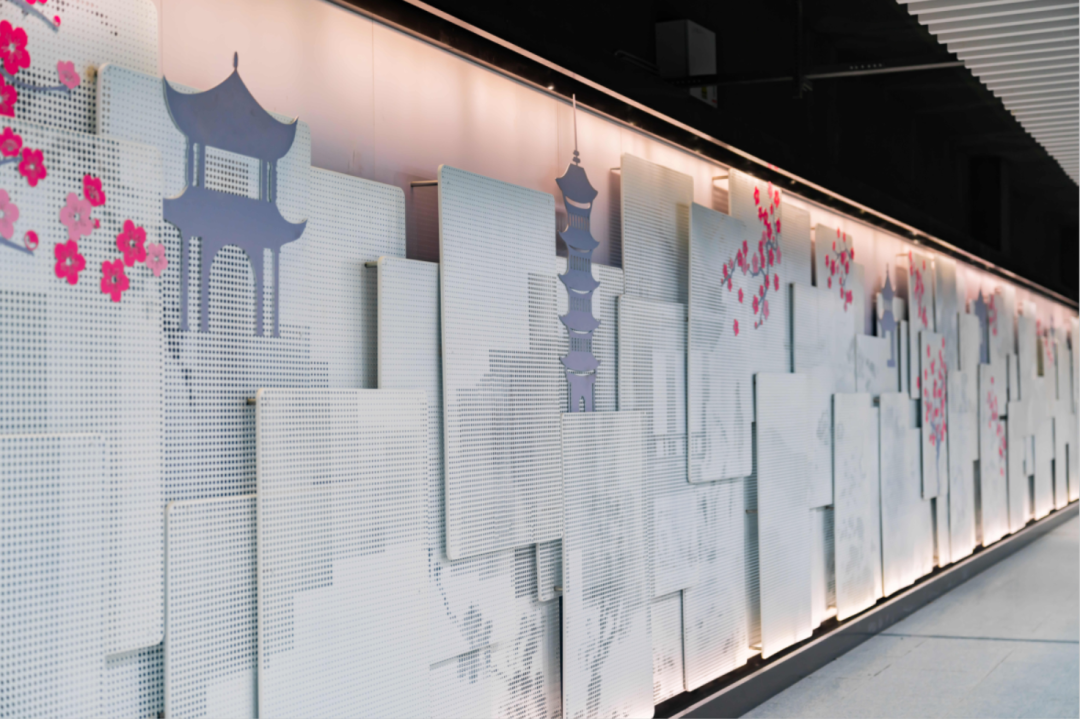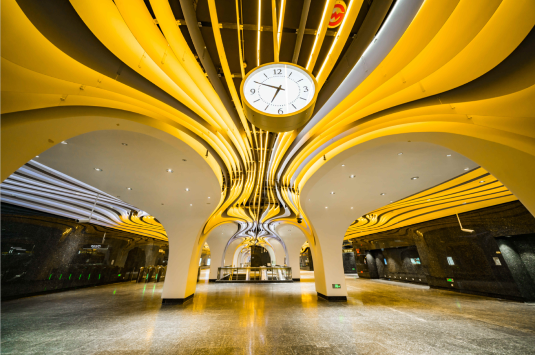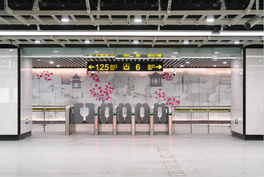 空间更艺术:车站设计引入空间艺术和艺术空间的概念,如豫园站的“上海脉搏”和一大会址·黄陂南路站的“黄陂疏影”车站主题艺术装修、陆家嘴站换乘通道的“今朝踏浪”艺术装置、把二维的平面转化成三维的空间艺术,集功能性、人文性、艺术性于一体,为城市留下可阅读的,有情、有味、有品的城市第二空间,形成了别具特色的装修主题及艺术装置;