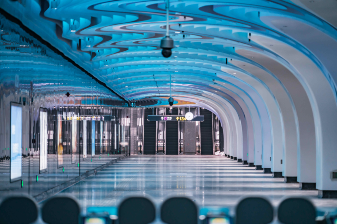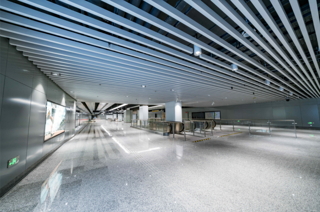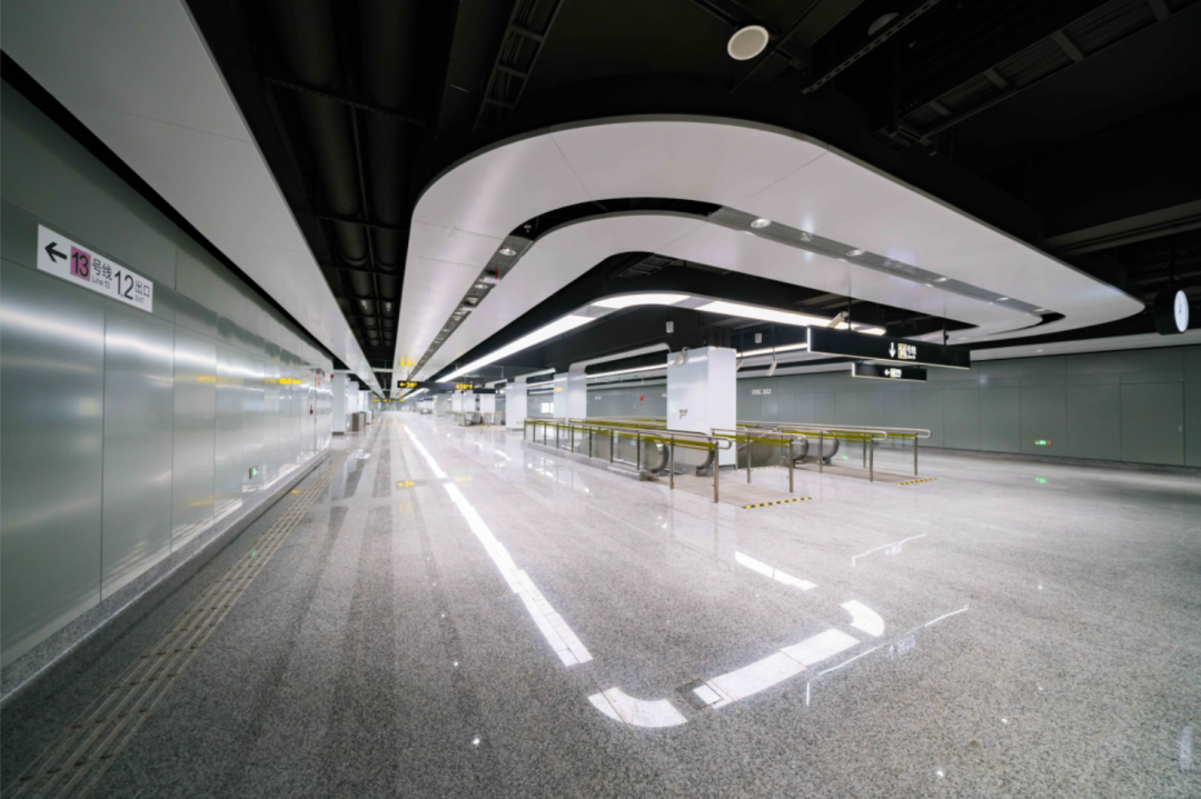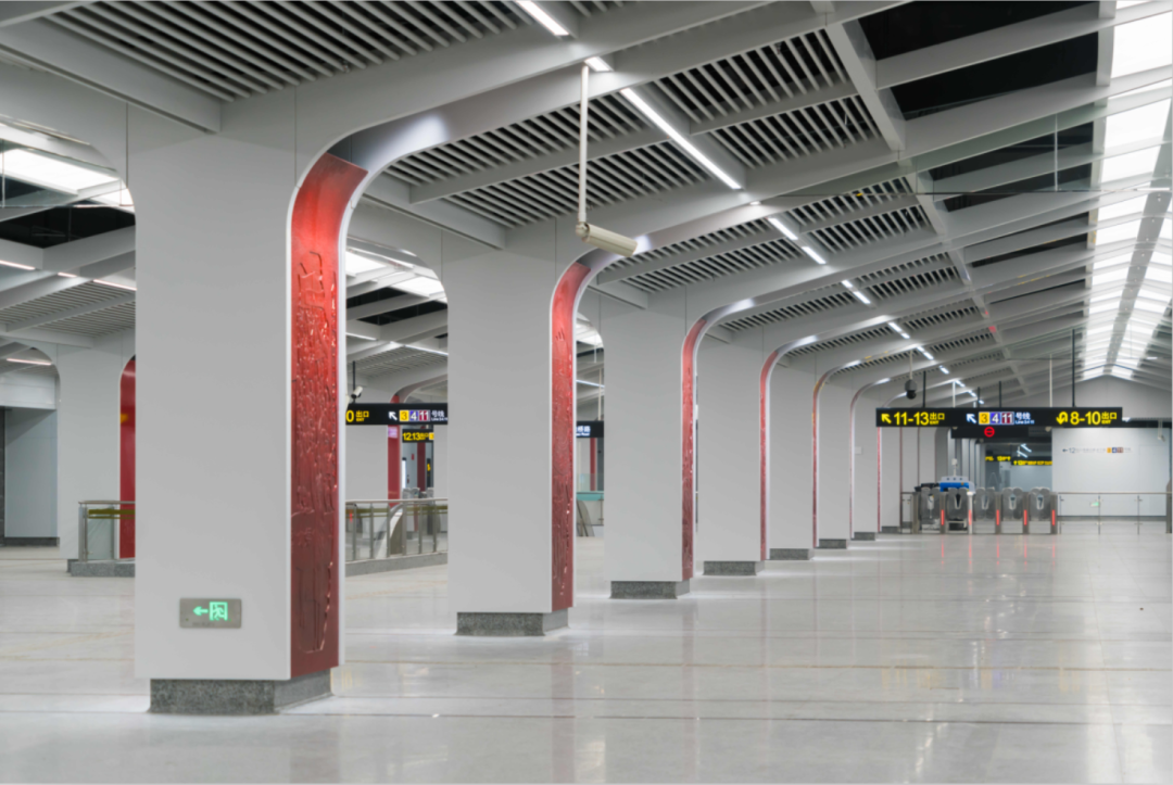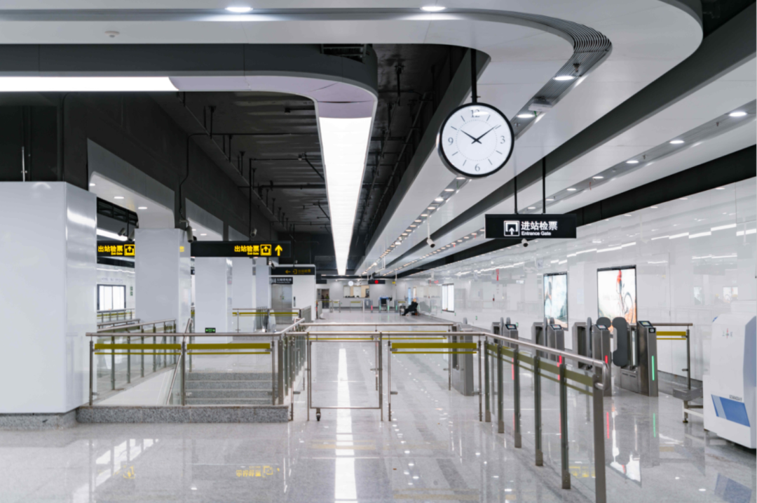 车站设置了环境监测系统,车站内的监测内容包括公共区域及关键场所的PM10、PM2.5、CO2、温度、湿度,卫生间的异味(氨),通风管道积尘量,空调系统送风质量、厂界(车站边界)的噪声,冷却水的浊度、水温、pH等,管理平台面通过线路级和车站级环境监控,实现了统计分析、预测预警等功能。