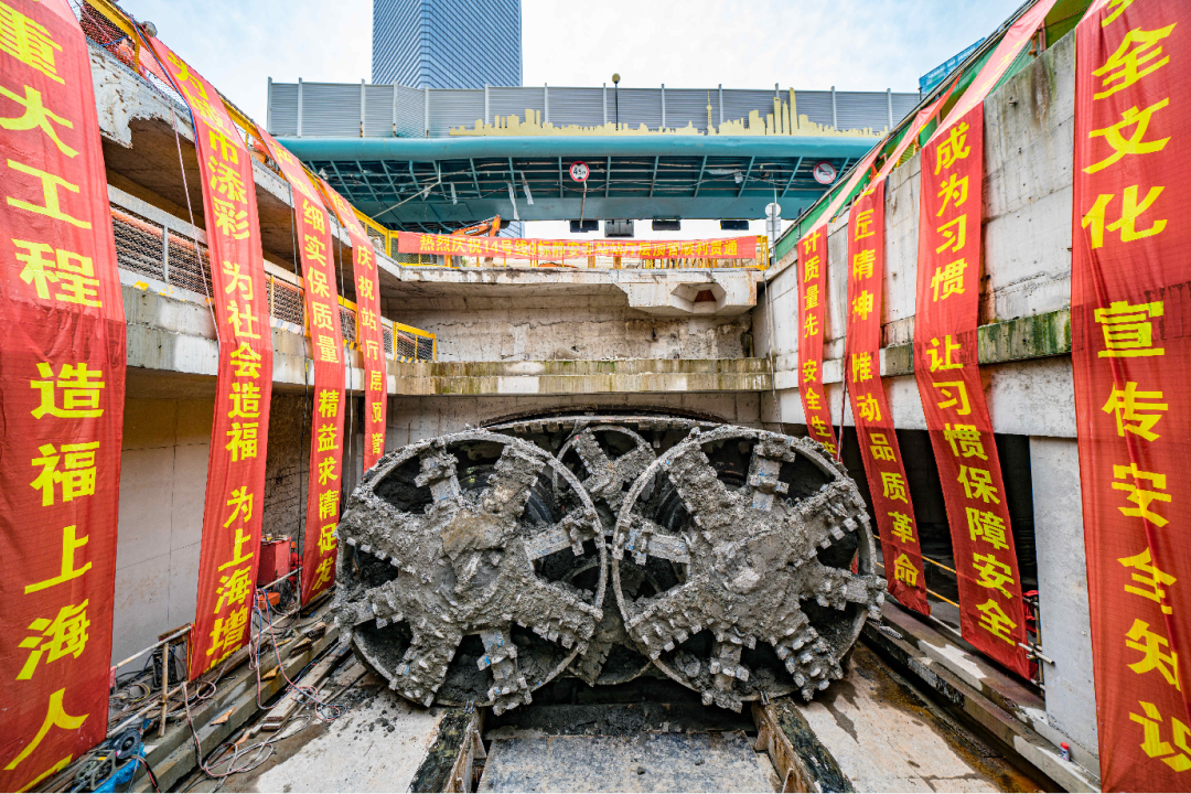 14号线全线共20次穿越运营轨道交通线路,其中,陆家嘴站~浦东南路站区间在小半径曲线条件下连续穿越轨道交通2号线、东西通道及银城中路下立交,区间隧道与2号线最小净距仅为3米。长乐路风井~静安寺站区间,长距离砂性土中掘进,穿越历史建筑保护群。云山路站~蓝天路站~黄杨路站区间盾构近距离下穿运营中的地铁6号线双圆隧道为国内首次,双圆隧道截面特殊,其受力后的结构及沉降变化不同常规,穿越要求高难度大,无相关工程参考经验。最终通过精心管理、精细施工、精密监控,成功实现“静默”穿越,线路沉降均控制在毫米级!