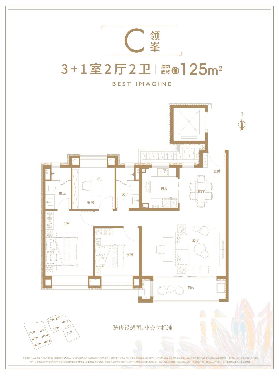 如果追求更舒适的居住,建面约125㎡做到了3+1房,对于后疫情时代生活方式的迭新,赋予了更独到的见解。