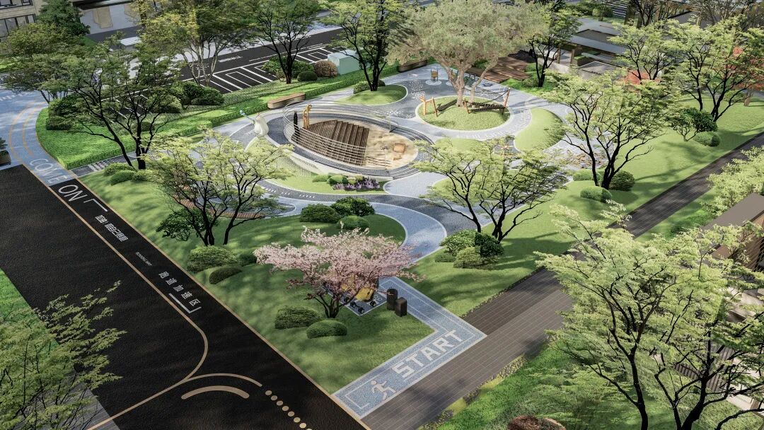 共享空间串联,让环跑道和约300㎡+儿童乐园实现多点洄游式场地,更打造活力亲民的运动康养空间,快速归家环,让归家穿梭在林间;多重康体运动环,让健身不只是在室内。