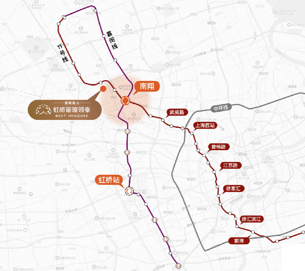 11号线南翔站,8站通达内环,13站直达徐家汇。还可直抵前滩、迪士尼等热门区域,可换乘13条轨交,串联中山公园、静安等热门商圈。