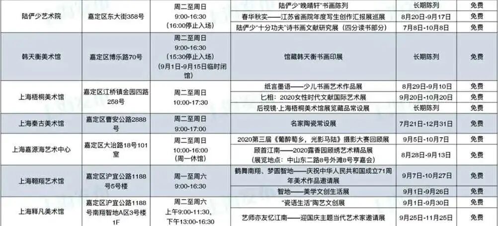 马上进入9月啦!天气不再那么炎热,嘉定的小伙伴们要不要去看一场精彩展览,陶冶陶冶情操呢?市文旅局最新推出了申城9月78场精彩展览,其中,嘉定有14场免费展览。赶快点击下文,看看有没有你想去的呢?详↓