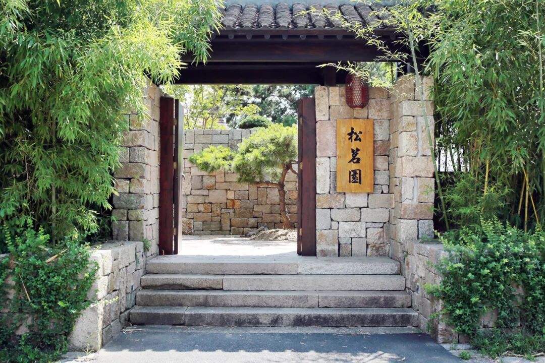 松茗园,顾名思义就是赏松品茶。“松茗”二字,取意于园内以五针松为主要植物景观,而“松茗”本身也恰好是一种中国茶叶的名称。松茗园以乡村田野风格为主,乍看泥墙茅顶,土味十足,细观则不难从中体味到造园者的特别用心。