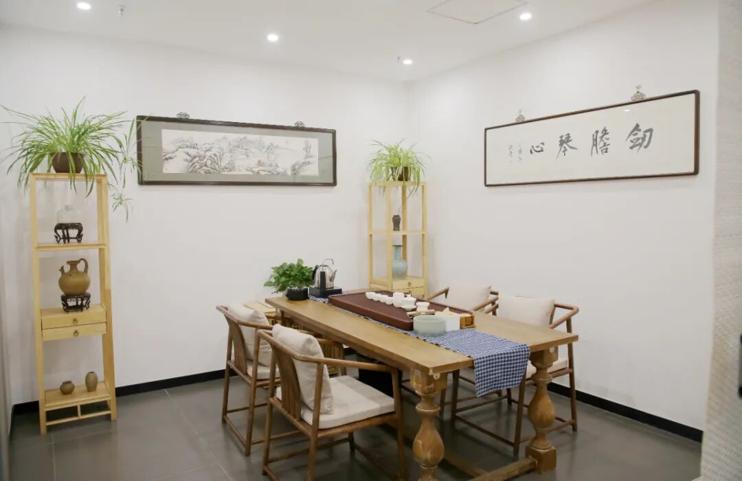 茶馆可同时容纳20人,包间配有投影仪,适合商务会议品茶洽谈。