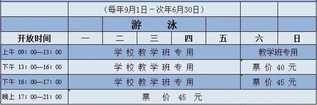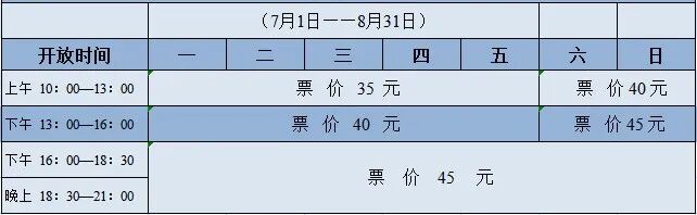 9月1日-次年6月30日 周一至周五 17:00-21:00;周末 13:00-21:00