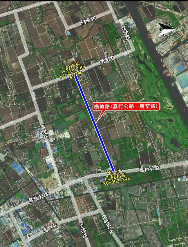 横塘路(嘉行公路-唐窑路)位于华亭镇西北部,地处规划中的嘉浏郊野生态片区,其起点连接的嘉行公路是未来城乡发展的联系轴。横塘路为四级公路,道路两侧主要为居民住宅及农田,是双塘村和连俊村村民出行的重要通道。