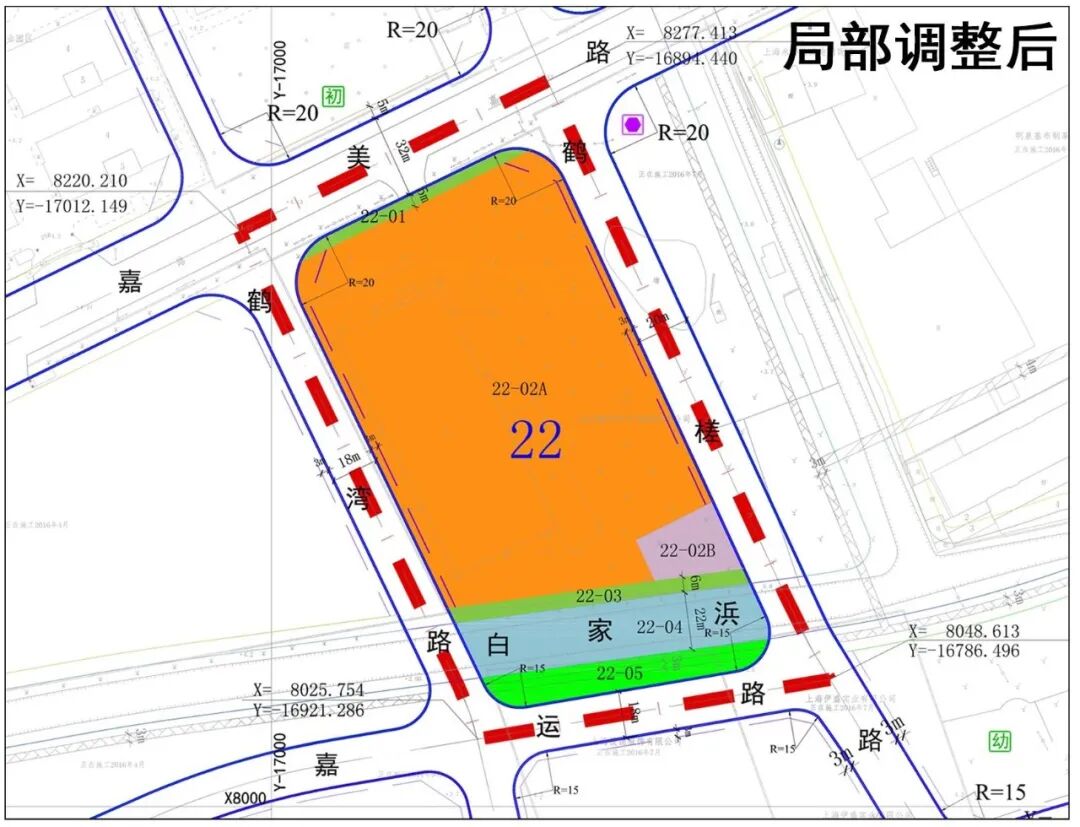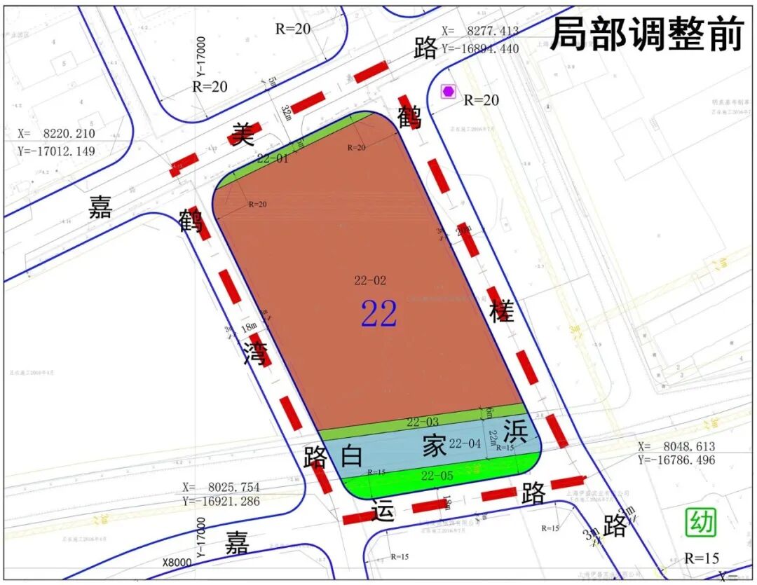 本次涉及调整的22街坊位于南翔云翔大型居住社区中东部,四至边界:东至鹤槎路、南至嘉运路、西至鹤湾路、北至嘉美路,用地面积约3.02公顷。