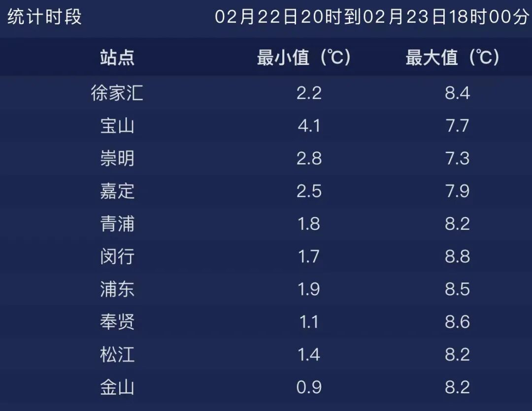 - 2022年的第53天 -嘉定明日天气:晴 9℃/0℃上海近期持续低温上海徐家汇站2月20日最低气温0.5度2月21日最低气温1.0度2月22日最低气温3.4…