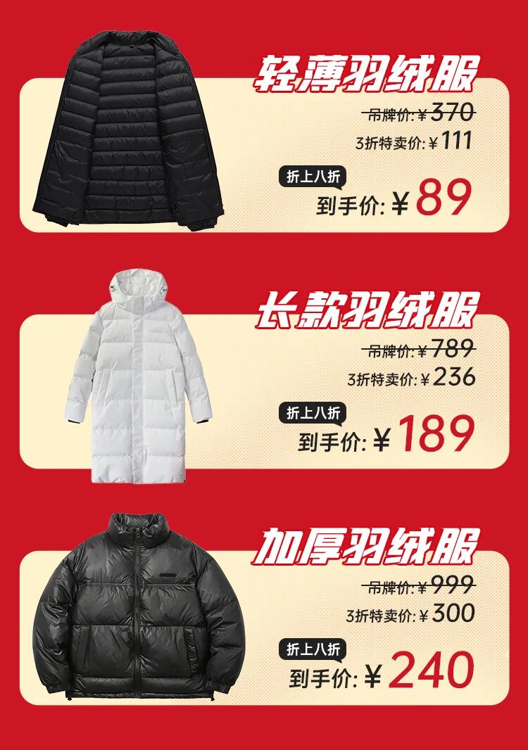降价后羽绒服只要百来块!