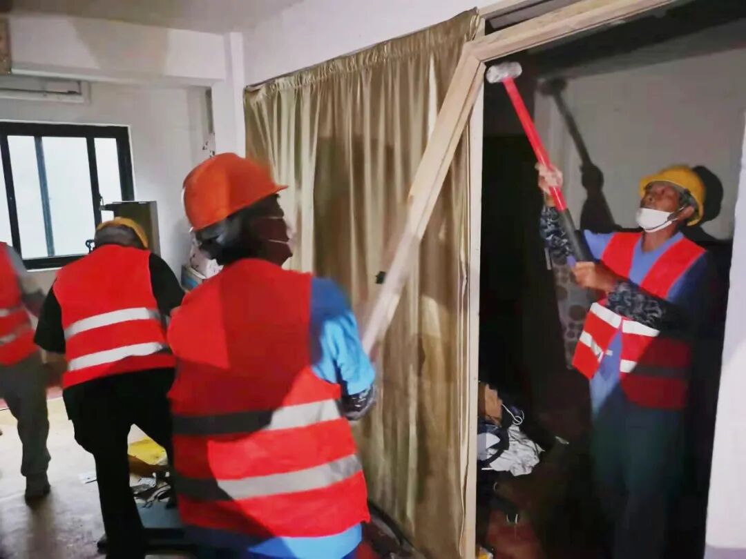 几天以后,工作人员上门复查发现,尚有5户居民未完成自行整改。联合整治工作小组随后对这5户群租户进行了代为协助整改,将房屋内的隔板拆除,并将床铺搬离屋外,并对私拉电线室外充电的租户进行了批评教育,要求其立即改正,消除安全隐患。