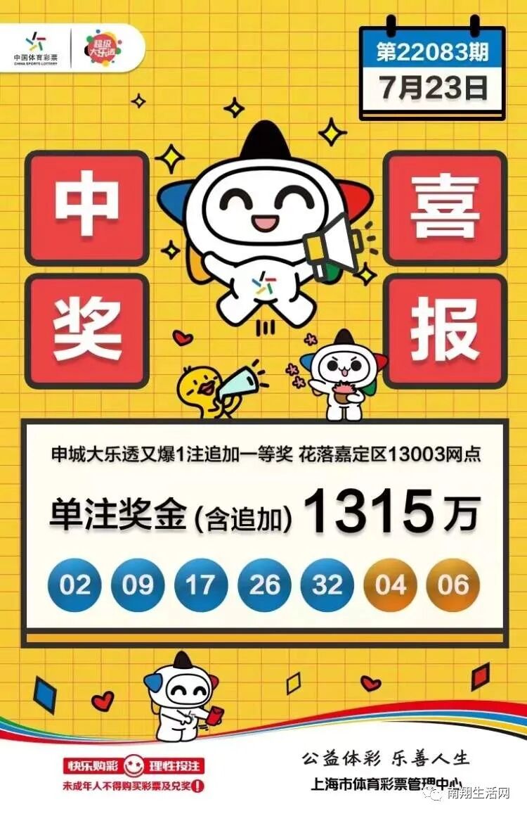 昨晚,上海又一次命中大乐透一等奖,单票奖金高达1322万元。神奇的是,这个大奖再次落入嘉定(而且都在江桥!南翔生活网注)!而就在5天前,嘉定同样曾命中过1注大乐透的一等奖,单注奖金587万元。
