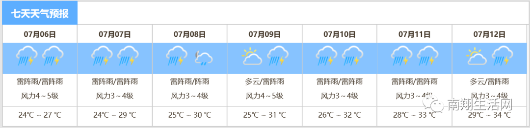 同时,嘉定气象局继续发布暴雨蓝色预警信号和雷电黄色预警信号:受较强降水云团影响,预计未来24小时我区还将有雷电活动,并伴有最大小时雨强30-50毫米的短时强降水和7-9级雷雨大风。