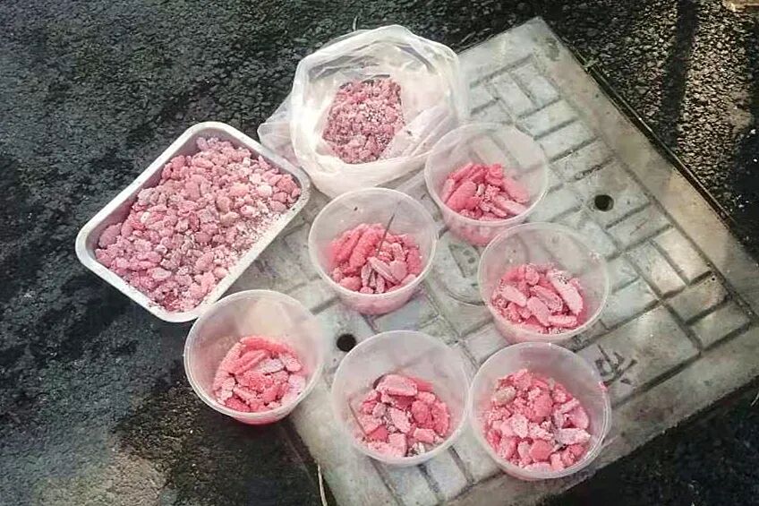 这种粉红色虫卵是福寿螺卵,小卵块有数十粒,大的卵块含卵千粒以上。与一般物种不同,福寿螺食性广,繁殖速度惊人,不仅严重破坏生态环境和农业生态系统,而且人误食后易感染寄生虫,危害健康。