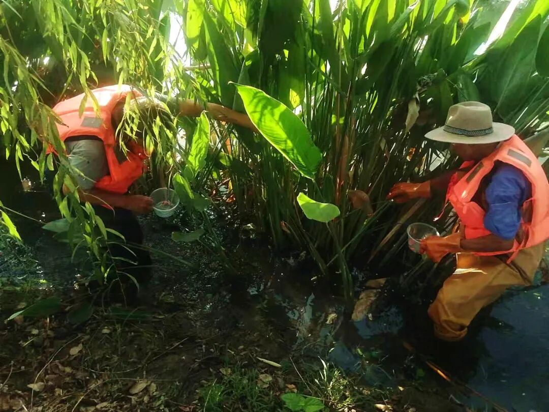 为了避免农药污染水环境,南翔镇水务部门与区农委沟通后,决定组织人工捡除福寿螺卵。河道养护单位的12名工作人员共捡除福寿螺卵块3.6斤,捣碎晒干后集中进行了销毁。